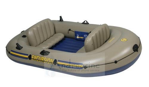 Constructed of rugged SUPER-TOUGH(tm) PVC. SUPER-TOUGH(tm) PVC is an extremely strong and durable plastic material that is impervious to gasoline, oil and salt water. The strong molecular structure of this plastic makes it highly resistant to damage from abrasion, impact and sunlight. This special PVC plastic material also allows more air pressure for greater rigidity while maintaining the PVC material's natural flexibility. The Excursion 3 Boat's SUPER-TOUGH(tm) construction is made with 30 gauge (0.76mm) material. The quality and design of this material results in extra strength and excellent durability.